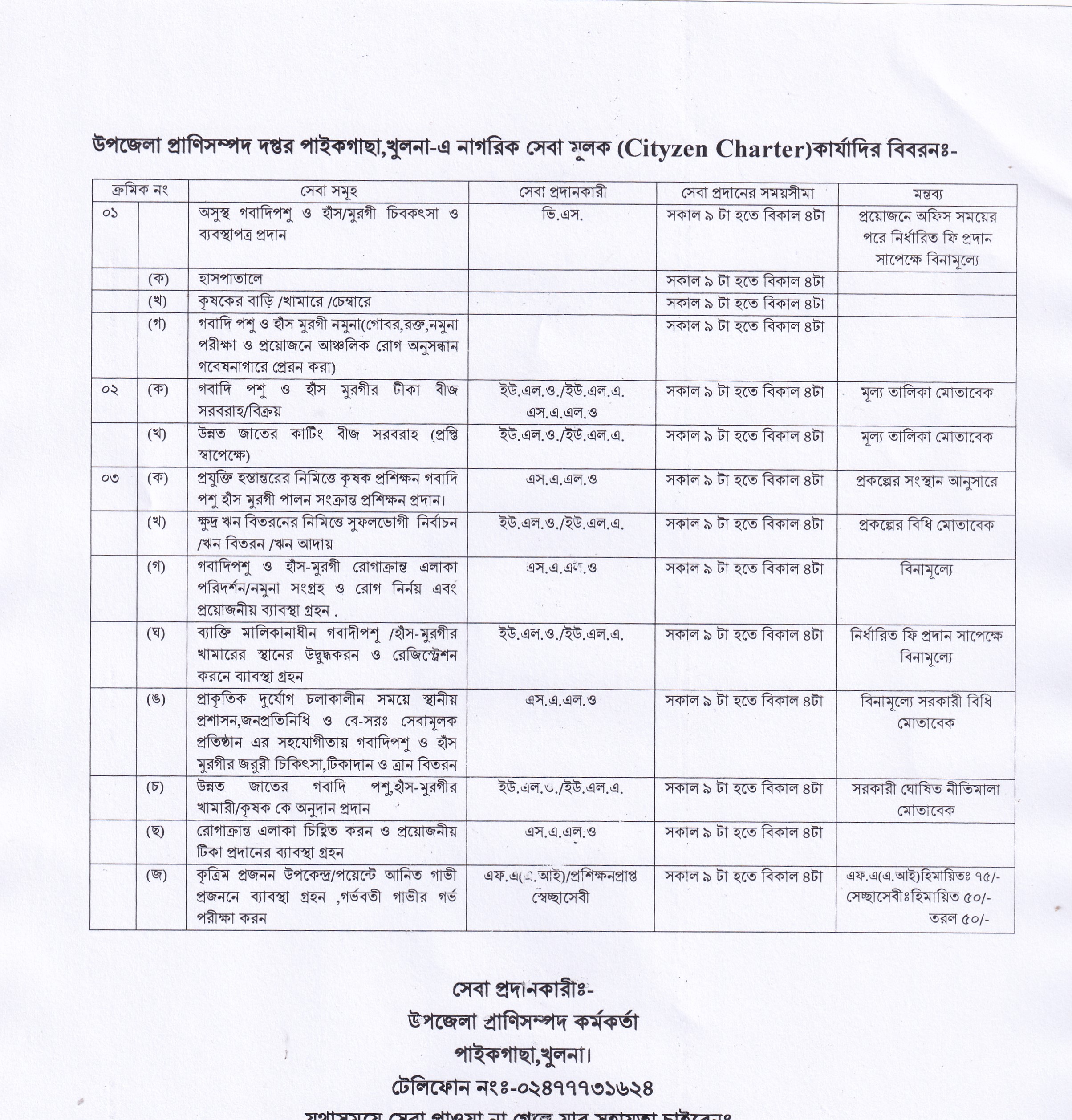 প্রাণিসম্পদের সেবা সম্পর্কিত একনজরের চার্ট।